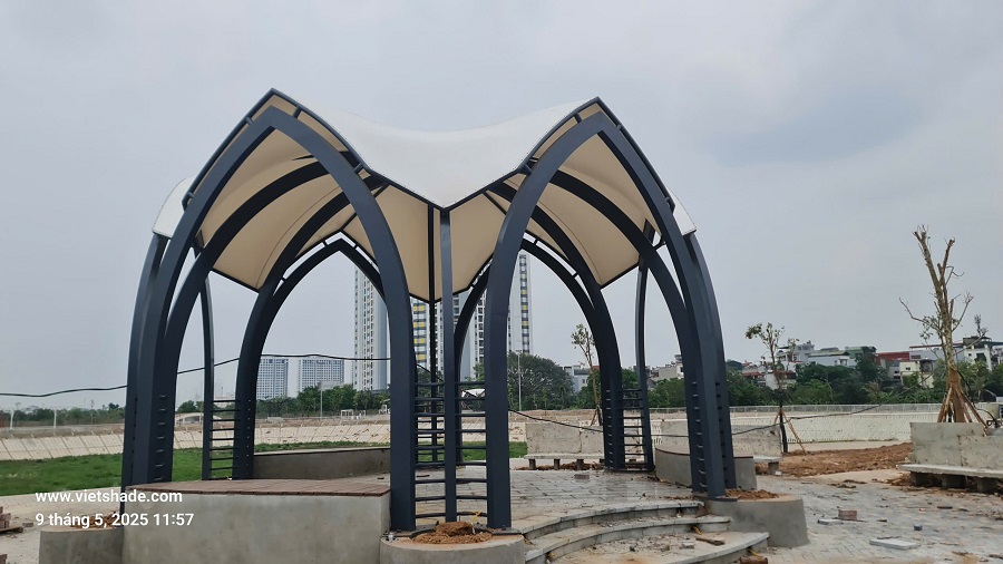 Vietshade là nhà thầu thi công hạng mục mái che cảnh quan công viên sử dụng bạt căng cho toàn bộ dự án như Chòi nghỉ mái bạt căng , mái lá nghệ thuật sử dụng bạt căng , mái vòm sử dụng lưới HDPE …